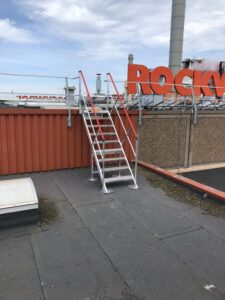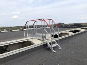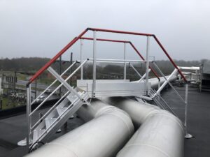 Vores fokus ved opsætning af adgangsveje, er brugeren skal kunne færdes sikkeret, når man forlader stigen eller trappen. Altså skal der væres værn der sikre langs tagkanten eller et wiresystem som brugeren kan koble sig til efter opstigning.