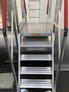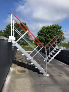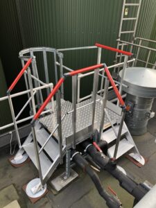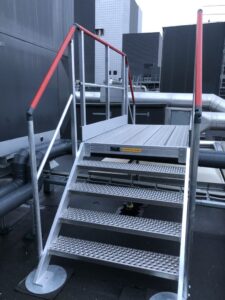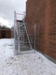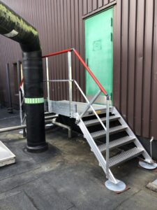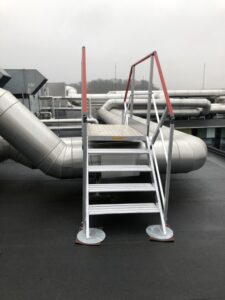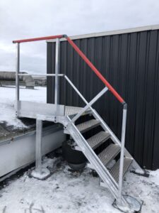 Første prioritet er at kunne kommer sikkert i højden. Dette kan løses på flere måde, og med forskellige trappe eller stigeløsninger. Ens for alle vores produkter er høj kvalitet, lav vægt, godkendt efter EN 14122 og tilpasset efter behov.